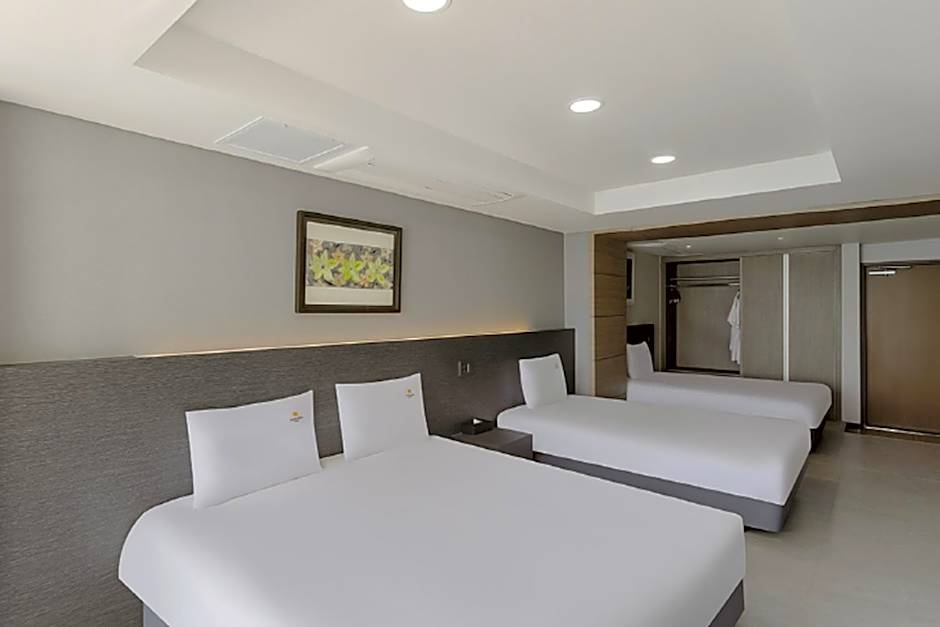 Guests will have a special experience as the quadruple room features a pool with a view. Providing bathrobes, this quadruple room includes a private bathroom with a shower, a bidet and a hairdryer. The quadruple room's kitchenette, which features a refrigerator and an electric kettle, is available for cooking and storing food. The spacious air-conditioned quadruple room provides a flat-screen TV with cable channels, soundproof walls, a mini-bar, a wardrobe as well as sea views. The unit offers 3 beds.