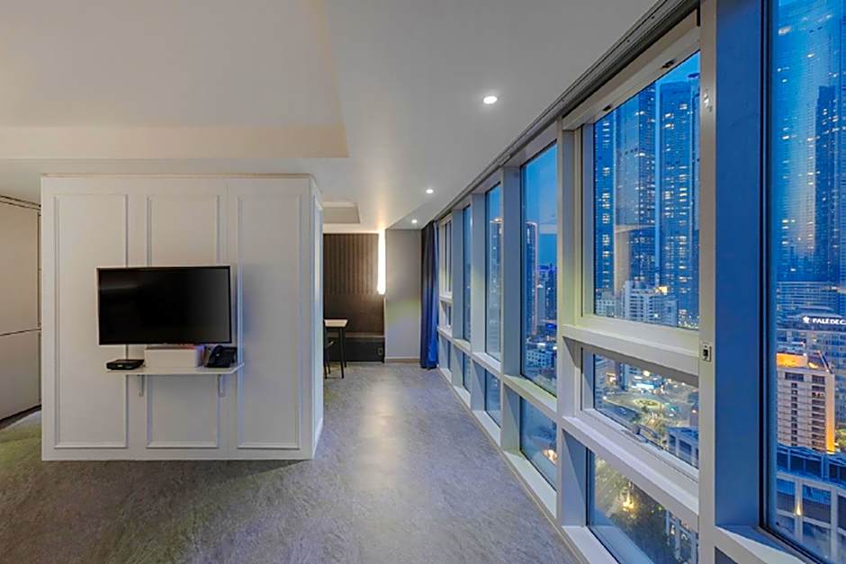 The pool with a view is the standout feature of this suite. This spacious suite features 1 living room, 2 separate bedrooms and 1 bathroom with a shower and bathrobes. The suite's kitchenette, which has a refrigerator and an electric kettle, is available for cooking and storing food. The air-conditioned suite features a flat-screen TV with cable channels, soundproof walls, a mini-bar, a wardrobe as well as city views. The unit has 3 beds.